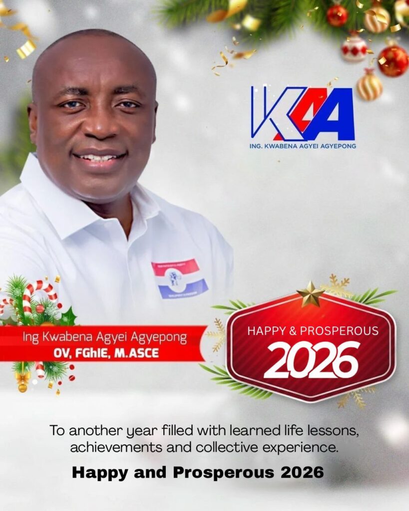 Ing. Kwabena Agyei Agyepong, former NPP General Secretary and aspiring 2028 NPP Flagbearer, has extended warm New Year greetings to Ghanaians, wishing everyone a happy and prosperous 2026.
