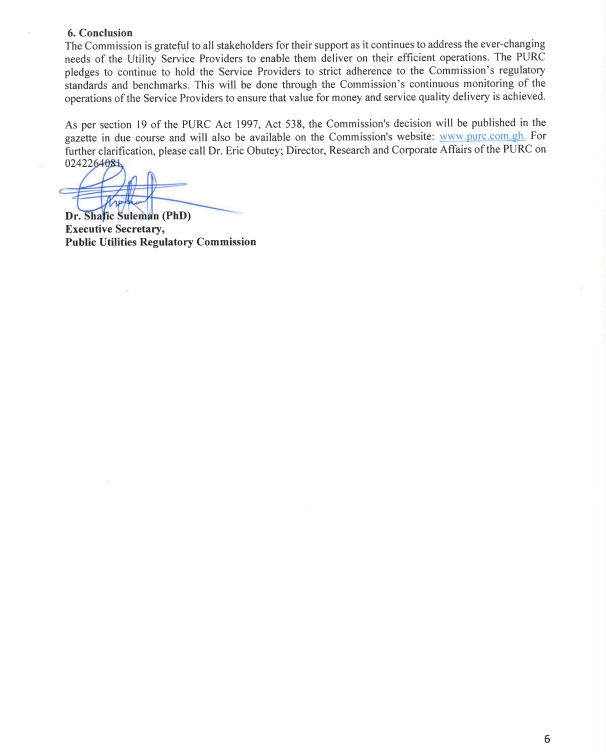 PURC stressed that the decision followed extensive stakeholder engagements, public consultations, and a thorough assessment of proposals submitted by utility companies.