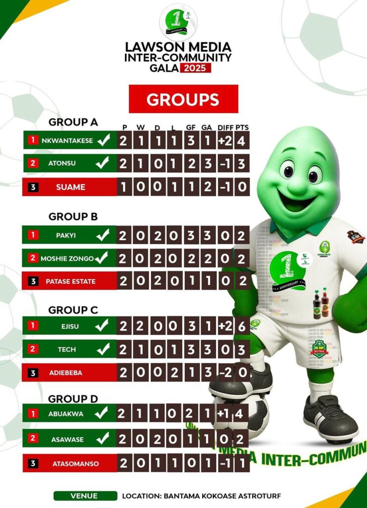 At the end of the group stage, Suame, Atasomanso, Adiebeba, and Patasi officially bowed out of the competition, marking the end of their journey in the 2025 Lawson Gala.