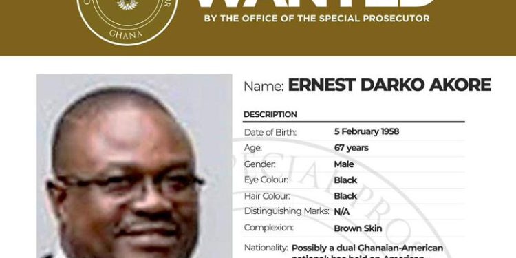 A public notice issued by the OSP states that Akore, aged 67, is being sought under a High Court-issued arrest warrant (Suit No. CR/0397/2025) in the criminal case titled Republic v. Ernest D. Akore.