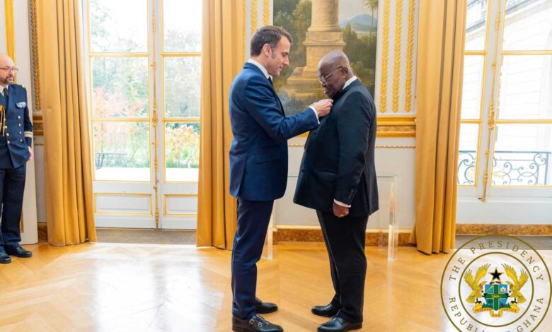 President Nana Addo Dankwa Akufo-Addo of Ghana has been honoured with the esteemed Grand Officier de la Légion d’Honneur by French President Emmanuel Macron during an official state visit to France.
