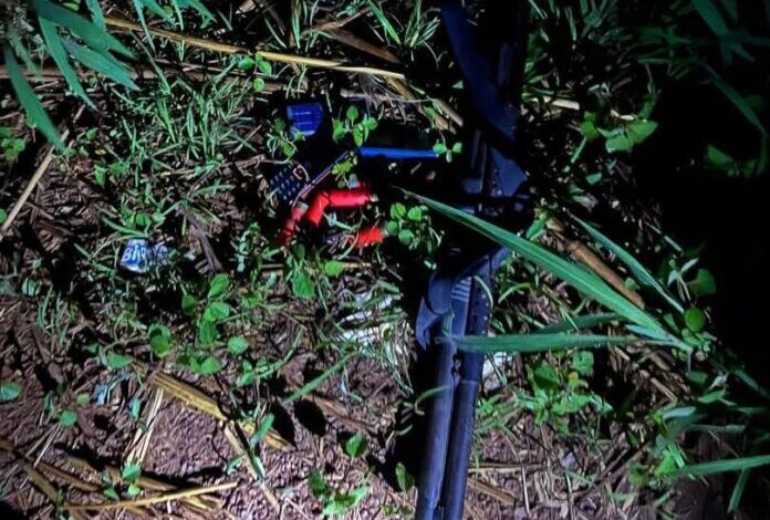 Items retrieved from the scene include a pump-action gun loaded with four live cartridges, two spent cartridges, and three keypad mobile phones. Two additional live cartridges were also found on the deceased suspect, along with a talisman tied around his waist.