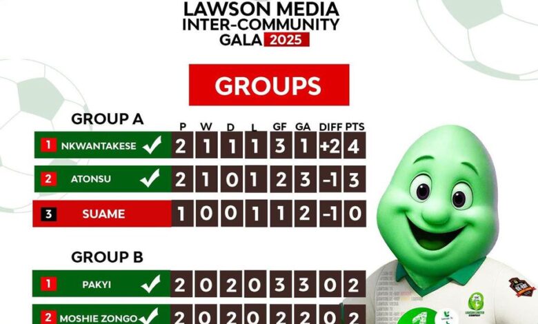 - Eight communities—Ejisu, Atonsu, Tech, Nkwantakese, Pakyi, Asawase, Moshie Zongo, and Abuakwa—are set to compete in the quarter-final stage of the Lawson Media Inter-Community Gala today