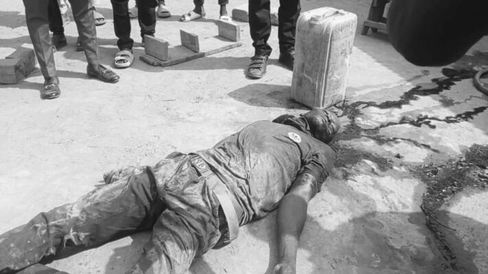 A 40-year-old truck pusher Baba Adongo fatally butchered his longtime friend, Isaac Tarior (also known as Ogoro), aged 42.
