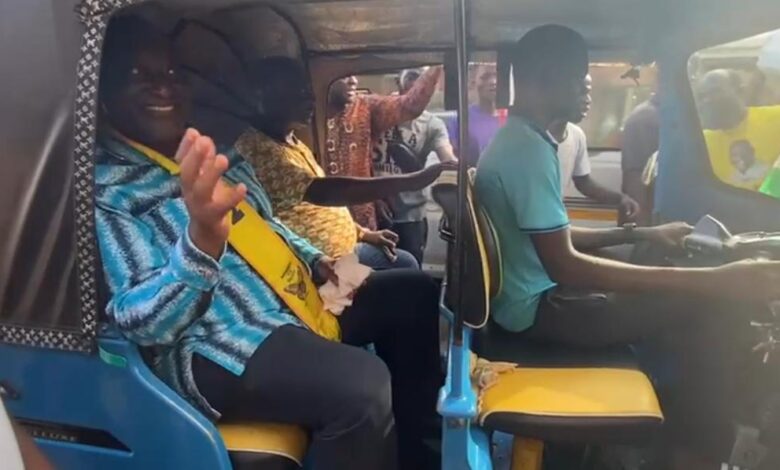 VIDEO: Alan Kyerematen Jumps into Tricycle During Kumasi Campaign