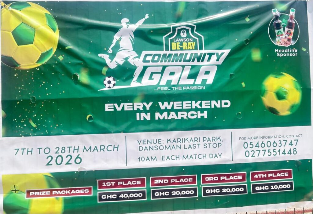 The Lawson Deray Community Gala, sponsored by Dr. Lawson Kyei Manu’s Lawson Deray Man Bitters, is set to entertain football fans in Accra as 32 teams clash for a share of the GHc 100,000 prize pool.