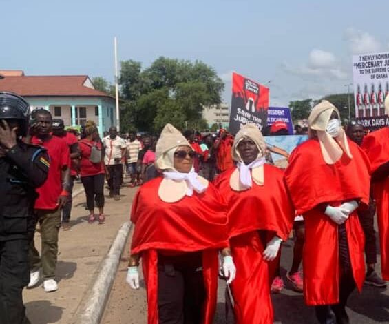 - Protesters from Tema West wore red judicial robes and wigs to show support for Chief Justice Gertrude Torkornoo